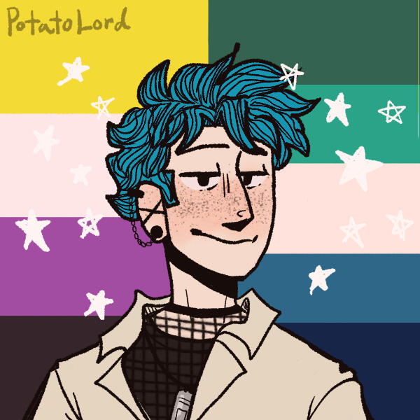 ...Eden says:... Hey! It's finally my turn. My name is Eden, i dont really know what role i play ( none of us have really gotten to the point, day has just come to terms with us and all...)!! Uh, my favourite colour is cyan! that's why my hair is cyan, ha. I go really well with stars...? I am nb and mlm, no excuse to be weird tho! i say dude and bro a lot so sorry if that makes you feel weird, just tell me and i'll stop! i hate weird people so i will have no remorse telling you that you're weird and that's on me.preffered prns are he/they/nova and i'm 20! No source, i'm an oc :)i look cool with stars so that's my trade mark! My sign off is a star / a variation of it such as β© | π